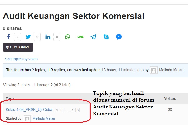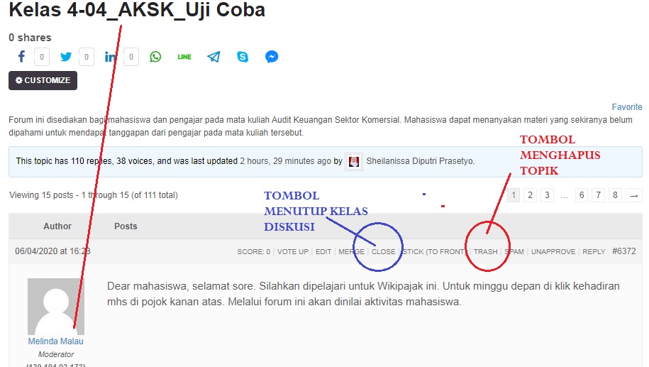 Setiap mata kuliah online memiliki forum diskusi untuk bertanya jawab dari siswa ke siswa, siswa ke dosen atau sebaliknya. Jika Anda tidak memahami materi perkuliahan, buatlah topik diskusi terkait dengan materi yang Anda tanyakan. Forum Diskusi yang tersedia adalah sebagai berikut: