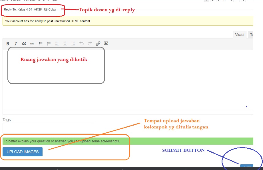 Reply topik dengan mode visual akan tampak sebagai berikut.